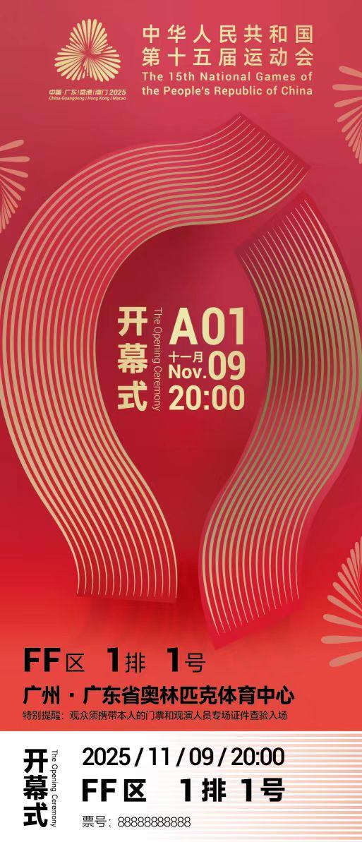 第十五届全国运动会(以下简称“十五运会”)在广东奥林匹克体育中心璀璨开幕,不仅奏响了粤港澳大湾区携手承办国家级体育盛会的华彩乐章,也让一份承载着深厚文化底蕴与创新巧思的“文化名片”——开幕式门票同步惊艳亮相。 这枚小小的门票,...